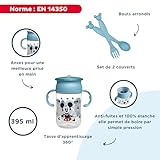 Disney Mickey Kindergeschirr-Set – unterteilter Teller – Schüssel – Löffel – Gabel und Tasse 360° – lustiges und praktisches Design für Baby-Mahlzeiten