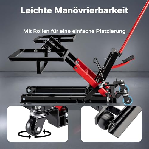 Wiltec Hydraulik-Heber 3 in 1, Motorradheber bis 300 kg, Quad Hebebühne Hubhöhe bis 53 cm, Mobile Hebebühne für ATV, Rasenmäher, Motorräder