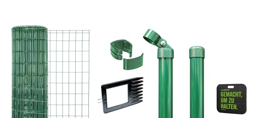 Alberts 693510 Fix-Clip Pro als Zaun-Komplettset, zum Einbetonieren mit Kniekissen | verschiedene Längen und Höhen - wahlweise in verschiedenen Farben | grün | Höhe 122 cm | Länge 10 m