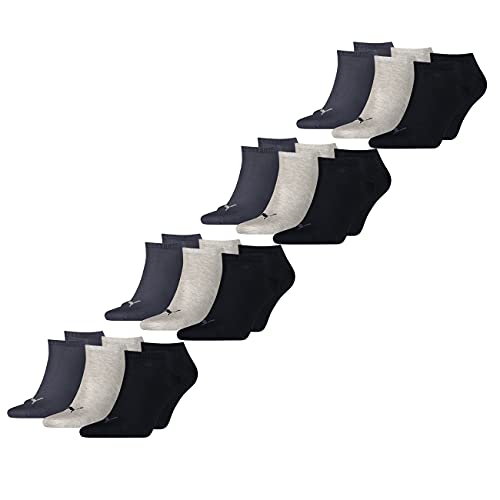 PUMA 12 Paar Sneaker Invisible Socken Gr. 35-49 Unisex für Damen Herren Füßlinge, Farbe:277 - blue/grey mélange, Socken & Strümpfe:43-46