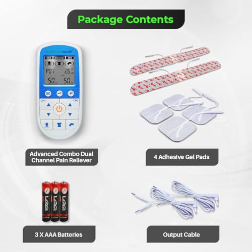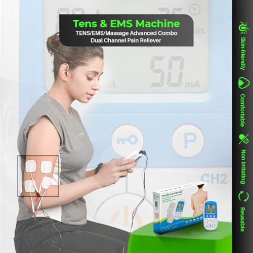 Digitales TENS- und EMS-Gerät | Natürliche Schmerzlinderung ohne Medikamente | 3-in-1-Schmerzlinderung, Rehabilitation und Massage | Zwei Kanäle | 4 selbstklebende Elektroden | Healthcare World