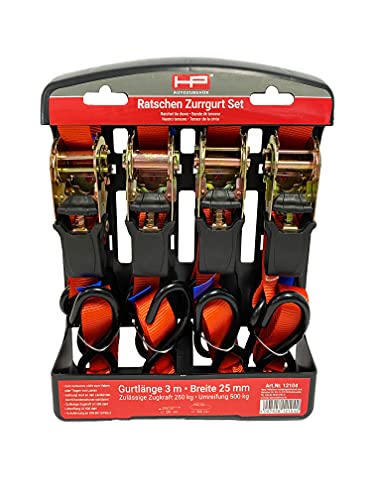 HP-Autozubehör 12104 Ratschen-Zurrgurt 4er Set Länge 3m