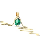 MIORE - Halskette Damen mit Smaragd im Tropfenschliff (0.68 Ct) Kettenhänger aus 14 Karat Gelbgold (585) in Krappennfassung - Klassischer Schmuck für Damen aus Gold in edler Schmuckschachtel (45 cm)