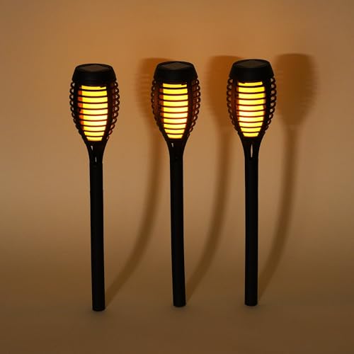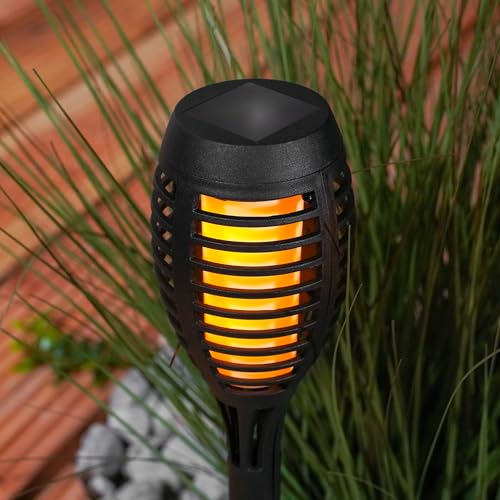 Esotec Solar Gartenfackeln Lorenzo, 3er Set, Akku, Steckleuchte outdoor, Wegeleuchte, Stecklicht, LED-Fackel, Solarlichter, Garten, Blumentopf, schwarz, Kunststoff, IP44, außen, 102315