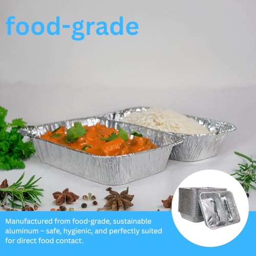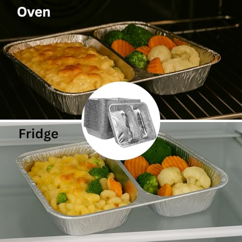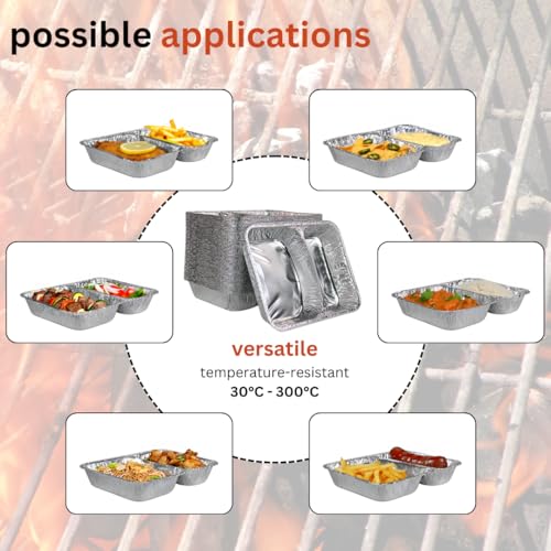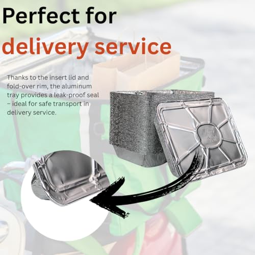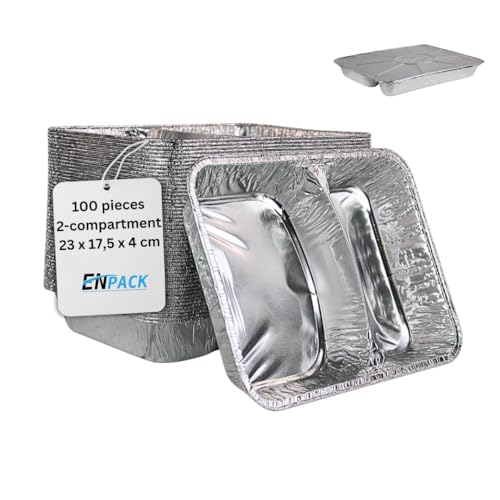 Enpack Aluschale R808-1020G - 100 Stück Aluschalen mit Alu-Deckel 980 ml Füllmenge - Zweigeteilte Menüschale 227 x 177 x 38 mm - Grillschalen - Einwegverpackungen - Assietten für Pasta/Nudeln